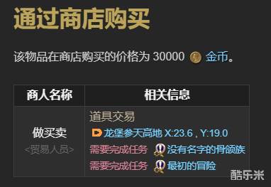 在自由脑窟穴的商人做买卖处花费30000金币购买。