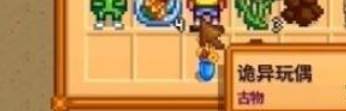 2、在长椅的西南方向使用锄头挖掘,会找到一个黄色的奇怪玩偶。