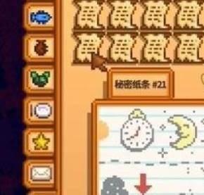 在星露谷物语中秘密纸条21需要玩家们前往指定的地点,在固定的时间点通过点击灌木丛即可,可是由于还有很多伙伴们不知道怎么获得,那么下面酷乐米小编为大家带来详细的秘密纸条21获取方法,感兴趣的玩家们快点一起来看看吧。