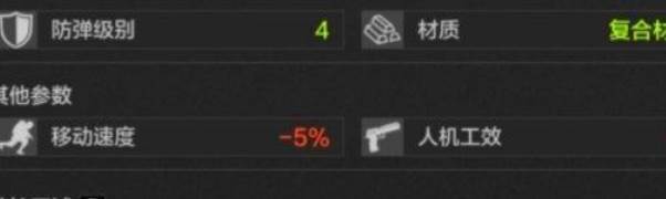 70耐久,胸部腹部防护,材质是装甲钢,是四级甲中防护能力最强的甲,防护性能不错,但扣除移速和人机功效比较高了,在四级甲弹对抗中能为使用者带来一定优势,只要你能忍受它带来的那份厚重感,那我还是比较推荐。