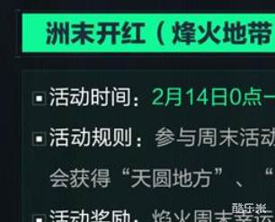 活动规则: 参与周末活动,领取焰火周末幸运补给包*3。有机会获得“天圆地方”、“纵横”等全新红色物品。