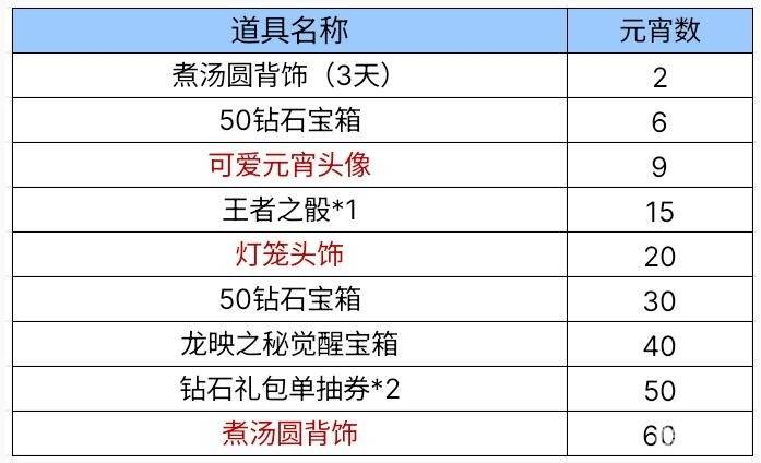 元宵灯谜会活动共有9款道具诚意放送,会根据大家获得的元宵数量逐步解锁。钻石宝箱、王者之骰、钻石礼包单抽券之类的道具就不多介绍了,因为大家已经非常熟悉。