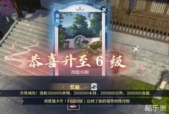 3、然后通过消耗材料将庄园等级升级至6级即可获得说英雄卡西楼月明;