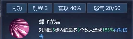 技能攻击个数主要是分为单体,群3,群6,群10(较为稀有)四种,以画雨蝶为例可以看到技能是打3个(简称群3),适合3个怪物的关卡。
