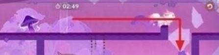 2、操控小狐狸穿过蓝墙后,切到美梦状态,将蘑菇堵在右侧。