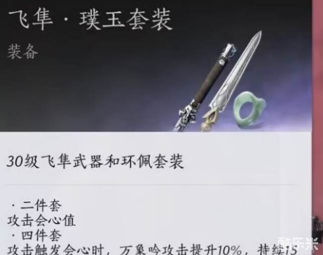 第一个推荐的是飞隼套,对于用剑流派来说是个非常不错的选择,全程都能发挥效果,可以为剑的输出提供稳定的增益。第二个推荐就是玉斗套+易相套,玉斗套在BOSS真气低于40%时可触发效果,配合易相套四件套可延长开盾时间2秒,能多发两道剑气,提升输出效果。