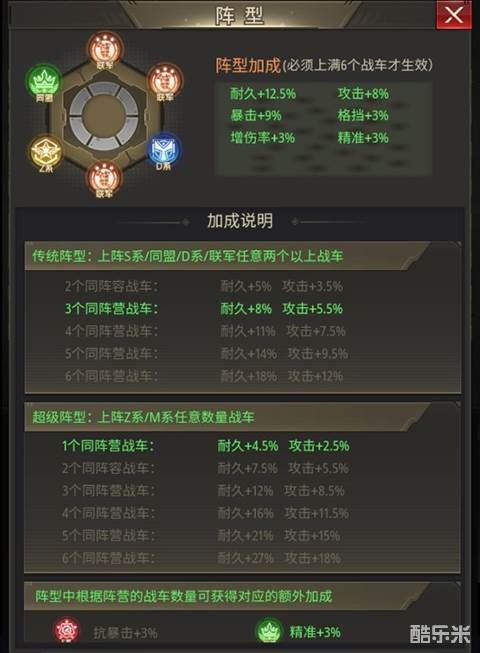 4、阵营之间还有羁绊加成,玩家可以通过上阵坦克激活阵营羁绊,增加更多属性加成。