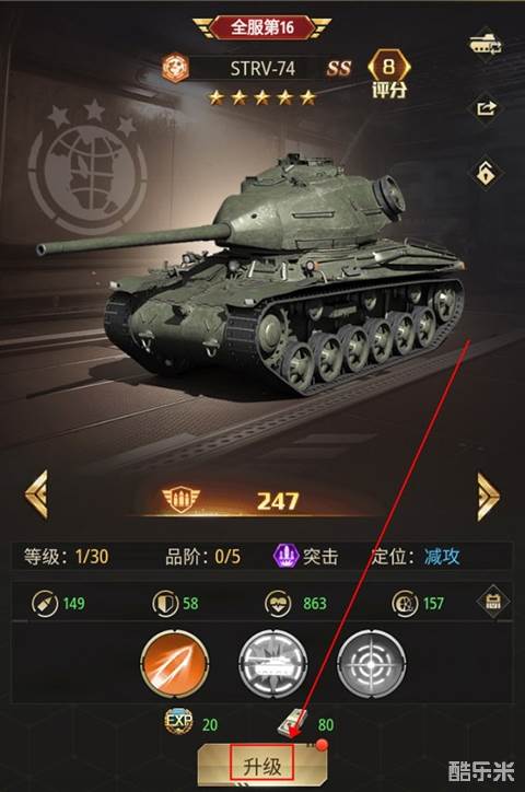 1、玩家可以对坦克进行升级,提升等级,解锁更多技能,提升坦克基础战力。
