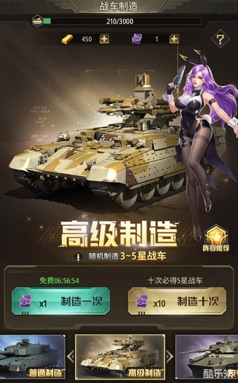 1、战车工厂是获得坦克最直接的方式,玩家可以通过消耗制造卡召唤坦克。