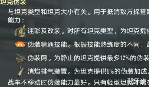 6.坦克移动,转动车体会使坦克的伪装值下降。