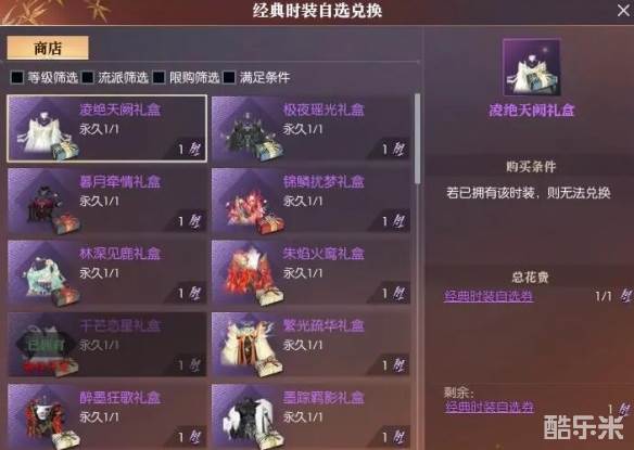 3、打开经典时装自选券兑换商店,选择想要购买的时装;