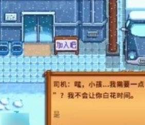 1、首先拥有20号纸条后到达joja超市的卡车旁,可以和卡车司机对话。