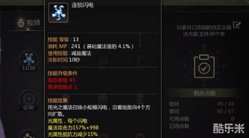 在辅助加点方面建议选择连锁闪电11级,还有思域以及瞬打,三级闪电风暴或者是三级神圣风暴,就可以作为主要的输出技能。光明之呼吸、无形打击这些辅助技能也应该点满,能够有效提升伤害值。