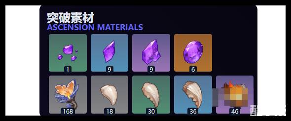 80000摩拉、最胜紫晶块3个、龙像的无智核8个、云岩裂叶30个、老练的坚齿18个