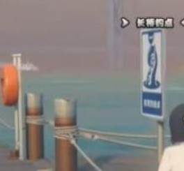 2、到达后只需下楼梯,并往左前方走,看到蓝色牌子就能在此钓鱼了。