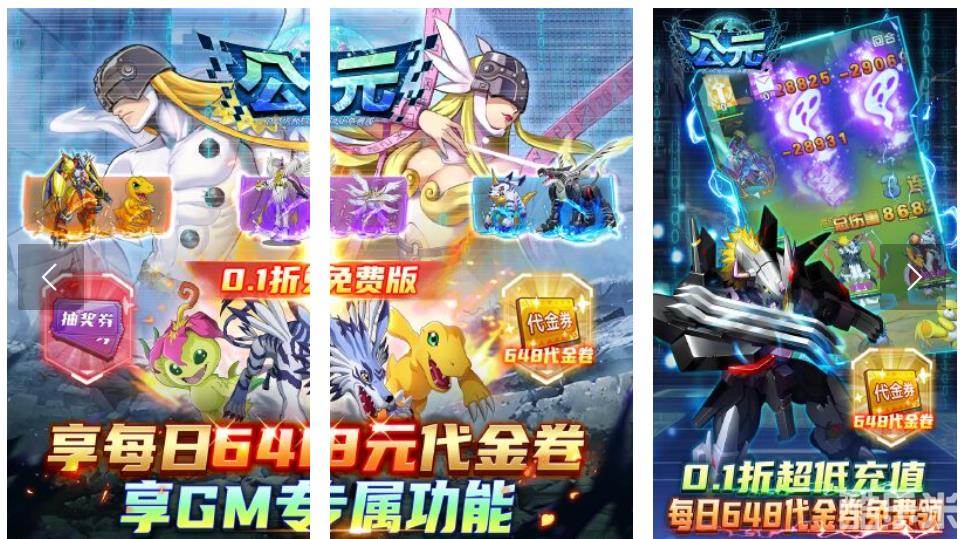 是一款全新BT版数码宝贝回合制手游,复刻经典进化路线,融合高燃策略战斗,玩家可自由组建全明星数码兽战队。游戏采用0.1折超神充值体系,每日登录即送价值648元的代金券,搭配无限钻石、数码出品,必是精品,打造零氪畅玩的暴爽体验。