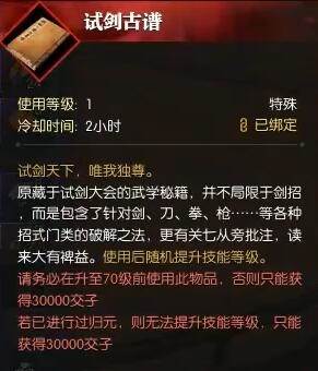 3、过去将他打败,NPC脚下会掉落一个道具【试剑古谱】捡起来;
