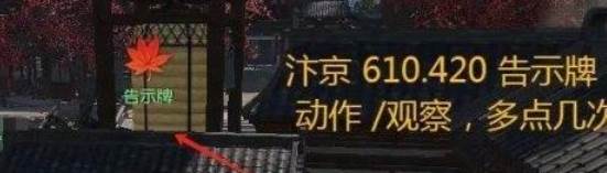 1、直接前往汴京(610,420)对告示牌使用动作【/观察】触发奇遇;