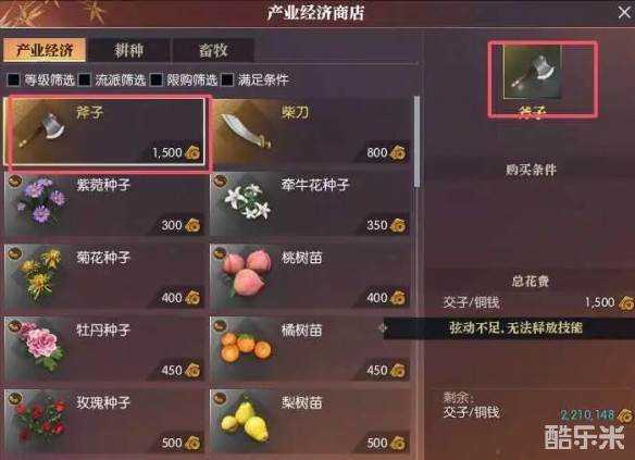 2、进入商店后购买一把【斧头】,装备好斧头去砍菩提树;