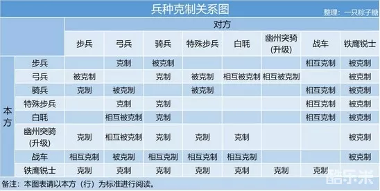 现版本所有兵种之间的克制关系都已经列出来啦,及得配合楼上的定义使用哦!