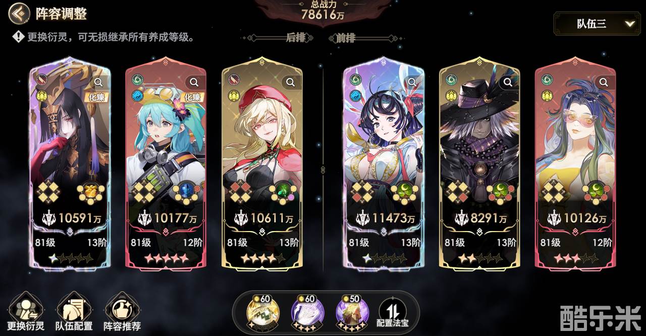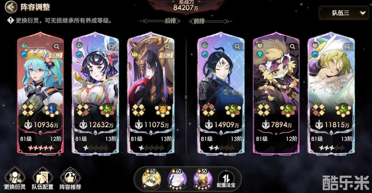 乌巢超强的后排保护能力、孟婆+嫦娥的双治疗、乌巢罗刹的共享治疗、飞天的同列保护和回能等都能为整体阵容提供强有力的保护和续航能力,能让地藏王在所有人的保护下,有极好的输出环境。