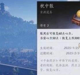 每次版本更新、错误修复等游戏优化的时候都会为玩家赠送限时的【枕中散】。