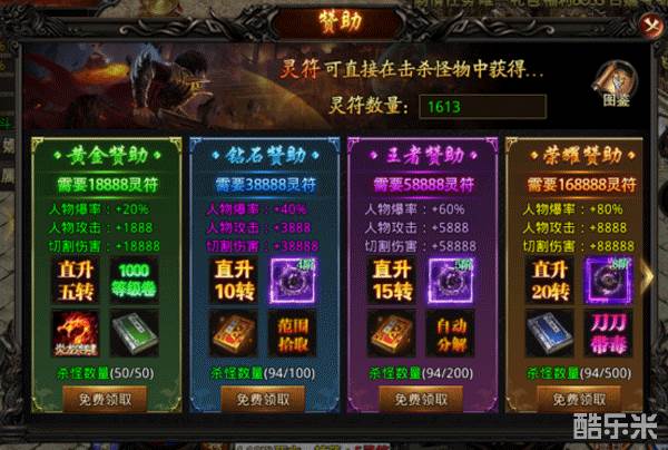 3、杀任意怪物达到条件,领取白嫖赞助,获得对应等级直升券