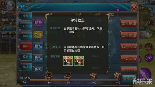 《御龙在天手游》的日常玩法还有很多,等待着玩家们去体验。《单骑救主》副本既带你体验了惊心动魄的历史时刻,又可以获得如此丰富的装备奖励,是每日任务的必做副本,等你来战。