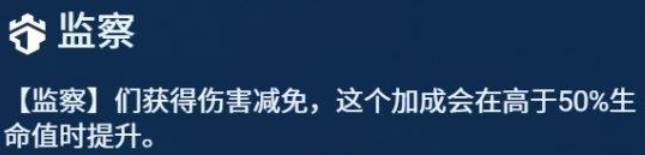 另外版本更新中监察最小伤害减免从15/25/35提升到15/30/40%,这波提升是非常大的,可极大幅度提升前排坦度,基本4监察抗伤能力就比较明显,而后期开出6监察敌方就像打铁一样。