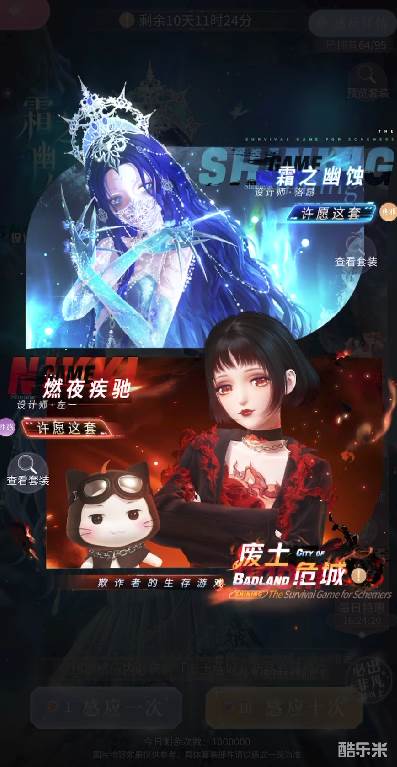 废士危城卡池是游戏在2025年2月25日会开启的一个主题活动,在该活动之中,玩家可以参与限时感应,并且有概率能够获得非凡性感套装“燃夜疾驰”,值得一提的是,玩家的在卡池之中如若抽中的是“燃夜疾驰”的碎片,那必须囤积十个碎片,才能够进行套装兑换。