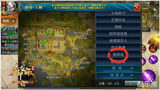 打开王城地图选择NPC移民官(325.428)点击前往,与移民官对话,移民官会问你--想要周游列国么?少年!!!点击转国即可打开国家列表,点击要转国家银两点击转国即可到达所转国家移民官处。