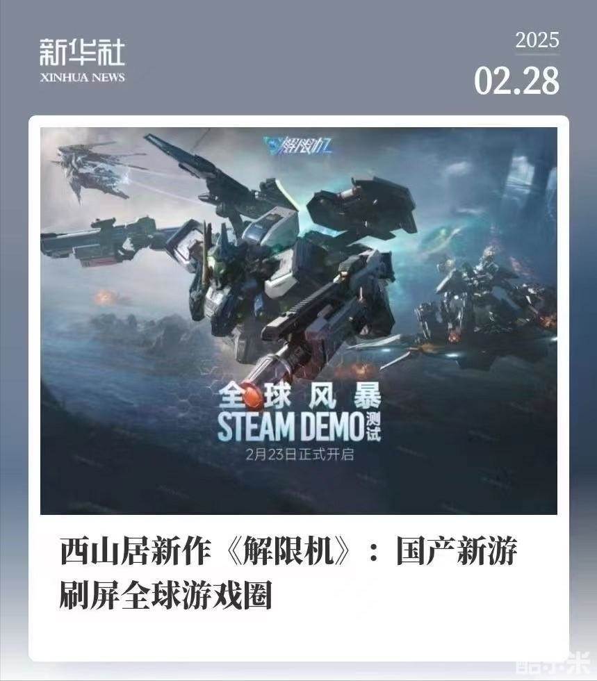 2月28日,新华社盛赞《解限机》在近期测试中取得的佳绩,直言这款游戏刷屏了全球游戏圈。
