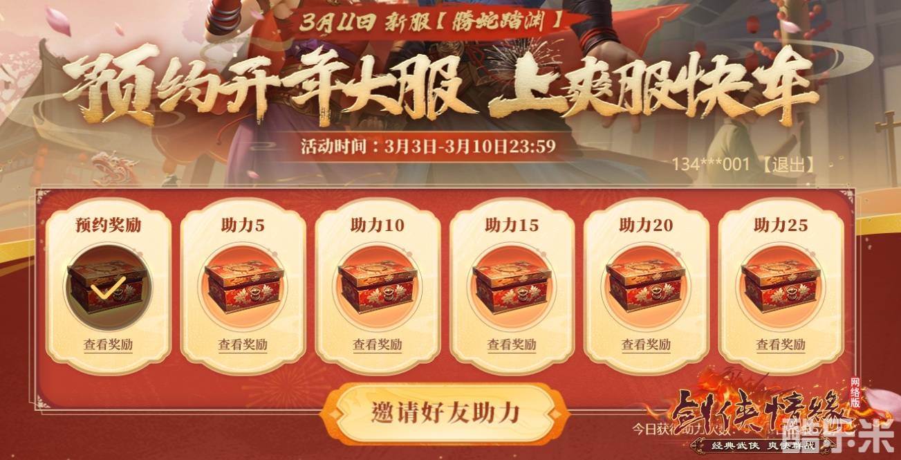 参与新服预约,开服登录收获专属好礼,助力大侠轻松闯荡江湖!