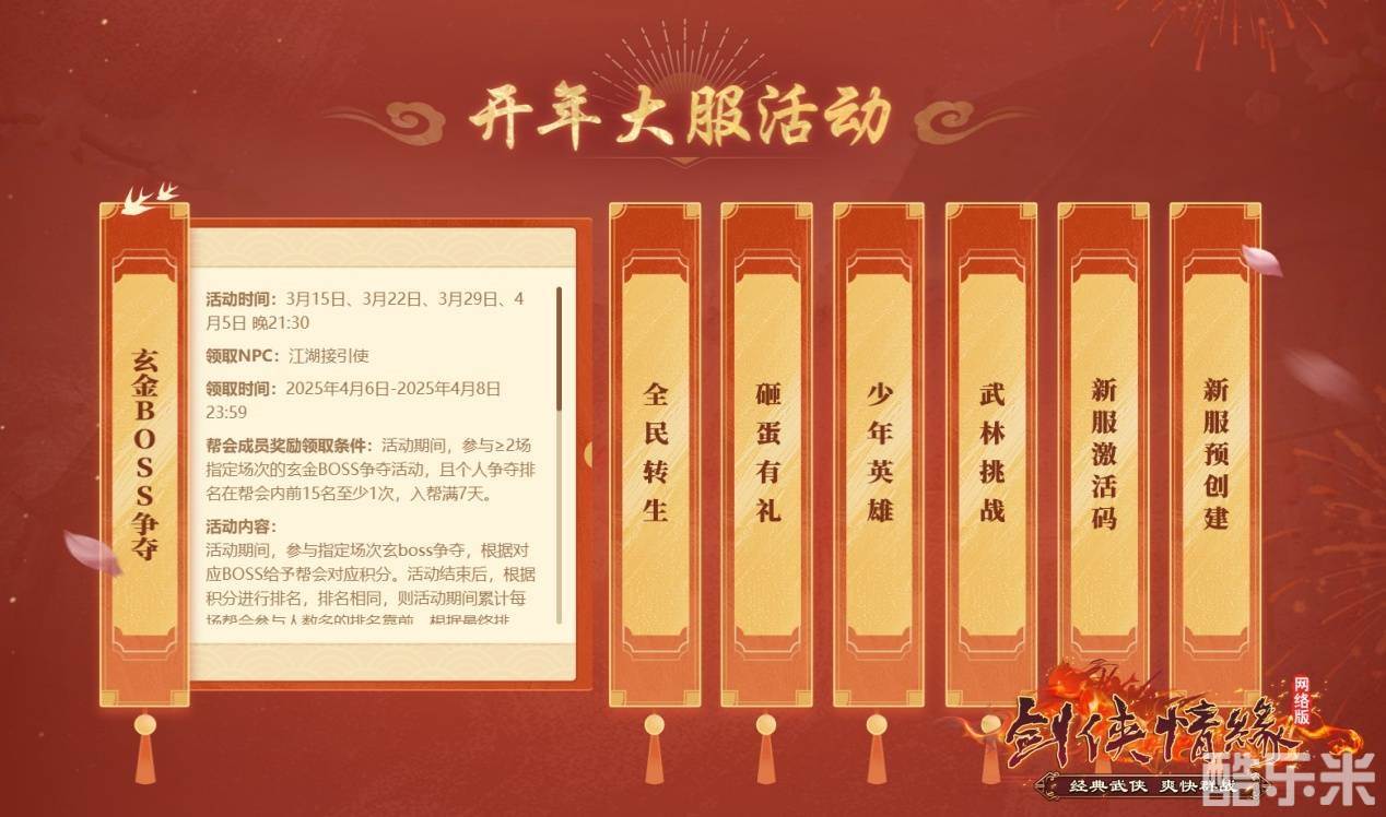 3月15日、3月22日、3月29日、4月5日21:30开启,参与指定场次新 BOSS 争夺,为帮会赢取积分。活动结束后,帮会按积分排名领取丰厚奖励。个人满足参与条件,也能收获丰厚回报,快来为帮会荣誉而战!