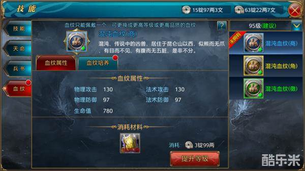4、可使用龙纹和龙玉,升级成更高等级和更高品质的血纹。