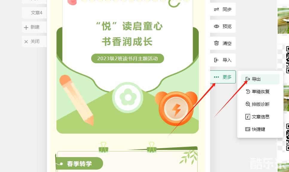 点击编辑区右侧的“更多 - 导出”,选择导出为图片格式。