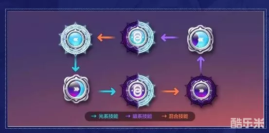 在3转后,当夜光在日蚀效果下施展暗属性技能,或在烈日效果下施展光属性技能,使光暗值达到最大,将进入光与暗完全平衡的状态。在平衡状态下施展混合属性技能时,将产生额外的特殊效果