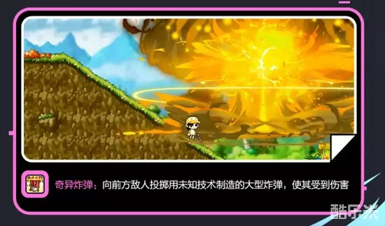 向前方敌人投掷用未知技术制造的大型炸弹,使其受到伤害