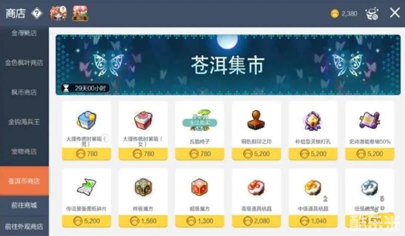 冒险岛枫之传说苍洱集市兑换什么?在冒险岛枫之传说游戏中,玩家可以在冒险战斗的过程中收集到各种资源奖励,还可以在苍洱集市中兑换需要的道具资源,那么在游戏中的苍洱集市都有哪些商品呢?想知道的小伙伴下面和酷乐米小编一起来看看吧