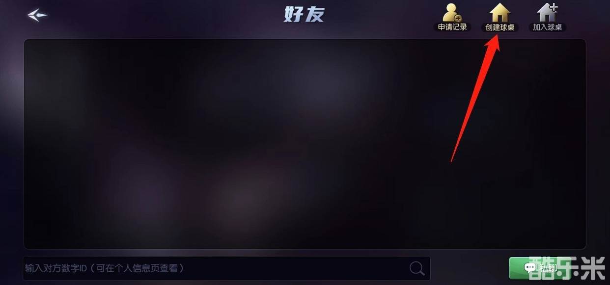 2、在好友列表界面的右上角玩家可以看到创建球桌的选项