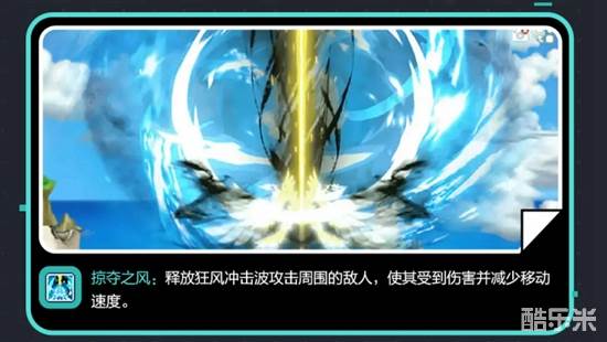 释放狂风冲击波攻击周围的敌人,使其受到伤害并减少移动速度。