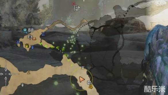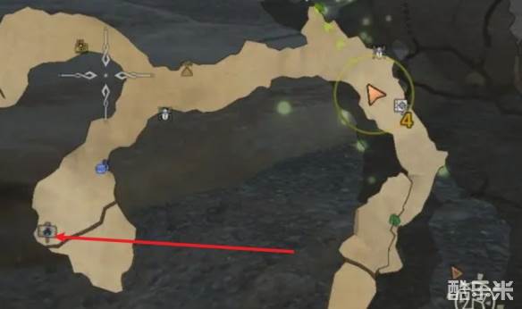 通过地图的上方前往区域4,来到这里的分岔路口,向前直走就可以来到矿石洞窟营地。