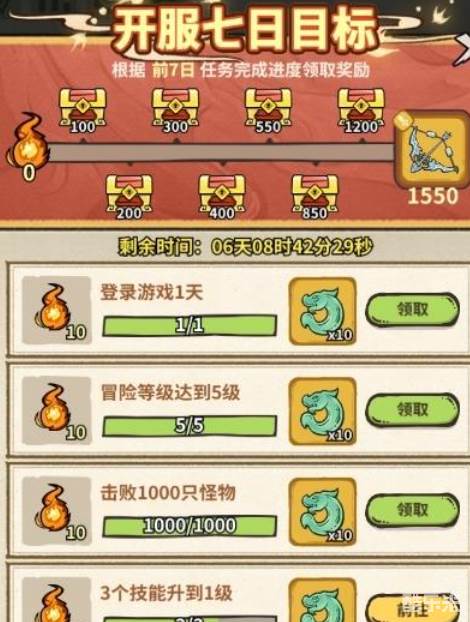 3、如下图,完成开服七日目标也可以获得丰富的奖励
