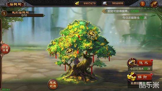 摇钱树升级、除虫都有机会获得元宝奖励,所以在给自己浇水的同时别忘了多加些好友相互浇水除虫哦~