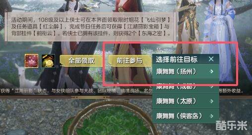3、以下以扬州为例,对话【康舞舞】接取引导任务;