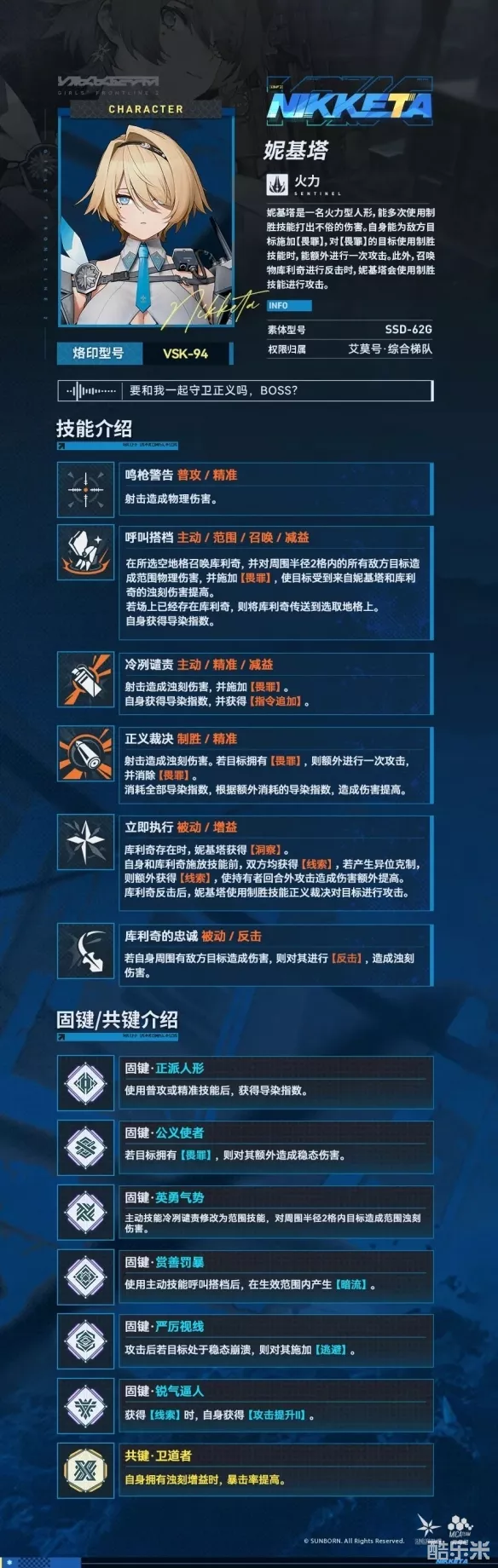 少前2追放妮基塔怎么样?妮基塔是少女前线2追放在2025年3月更新后实装的新角色,那么VSK94妮基塔有着什么样的技能呢?接下来酷乐米小编给大家带来了详细的《少女前线2:追放》妮基塔技能介绍,希望这篇文章可以帮到大家!