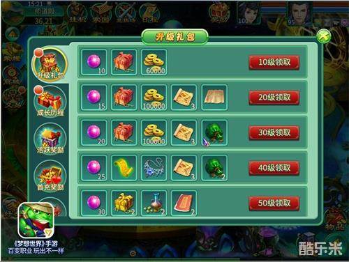 《梦想世界》手游新手礼包、签到礼包、微信月礼包、2980邮箱奖励等礼包均能为你提供丰厚奖励,助你快速度过新手期!此外,在等级上升的过程中,也不要忘记领取成长历程、升级礼包等阶段性奖励,让你快速适应游戏!在完成各个日常后,也要记得领取活跃礼包,银币袋、五宝等奖励!