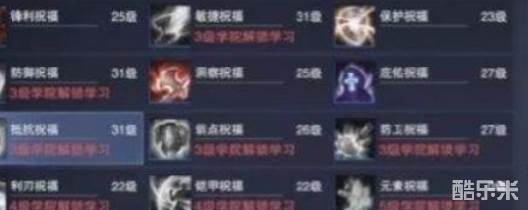 按照【生命】、【防御】、【抵抗】、【敏捷】、【弱点】、【保护】、【抗性】、【庇护】祝福的顺序升级。增加生命值、物理防御、魔法防御、闪避、命中、抗暴、免暴和全属性防御属性提升,由于公会技能无法提升辅助神官第一需求的属性,因此只要加强生存能力即可。