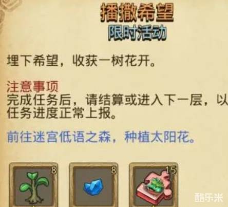 不思议迷宫植树节活动包含了树苗收集和定向越野,玩家只需完成相关任务就能获得钻石、树苗、仙人掌碎片等奖励,下面和酷乐米小编一起来看看吧
