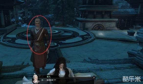 2、对话旁边的【老人】,进入剧情场景,在场景里找蓝色光圈并进去;